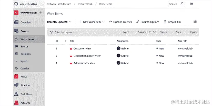 正如您在图片中所看到的,WWTravelClub 架构主要是由 Azure 提供的 PaaS 和无服务器组件设计的。所有的开发将在 Azure DevOps SaaS Microsoft 平台上进行。