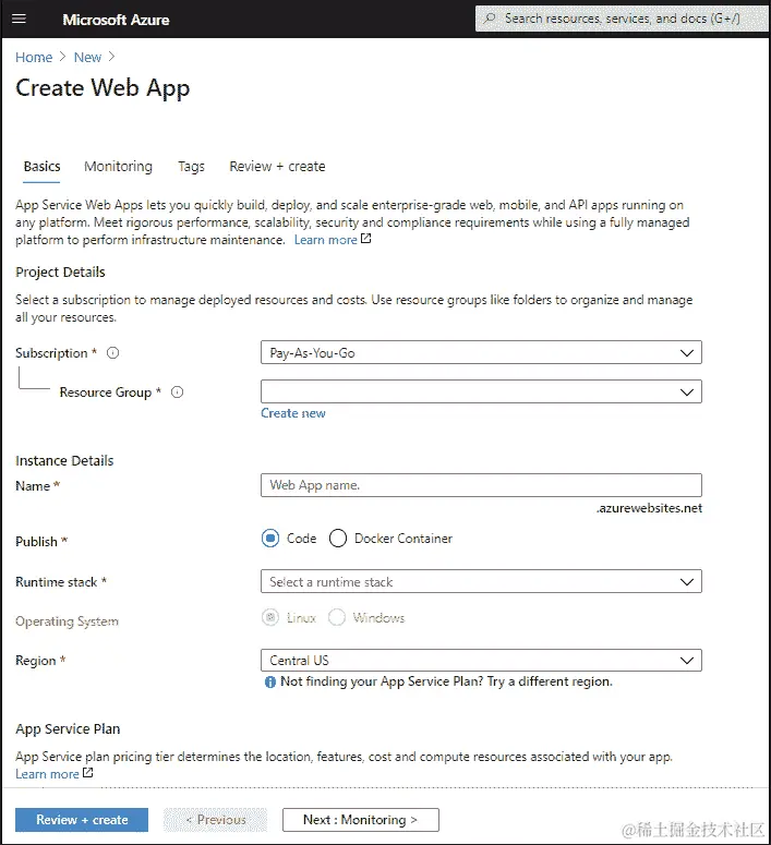 此外,Web 应用程序还有一个计划选项,您无需支付使用费。当然,也有一些限制,比如只能运行 32 位应用程序,无法实现可伸缩性,但这对于原型设计来说可能是一个很好的场景。