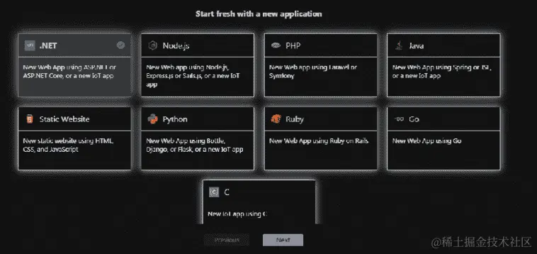 创建免费账户的过程非常简单,您将通过一个表格进行引导,该表格要求您拥有Microsoft 账户或GitHub 账户。