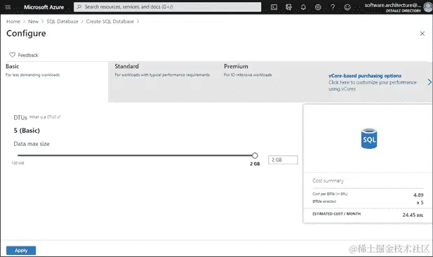 图 4.5:配置 Azure SQL 数据库定价层