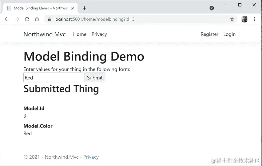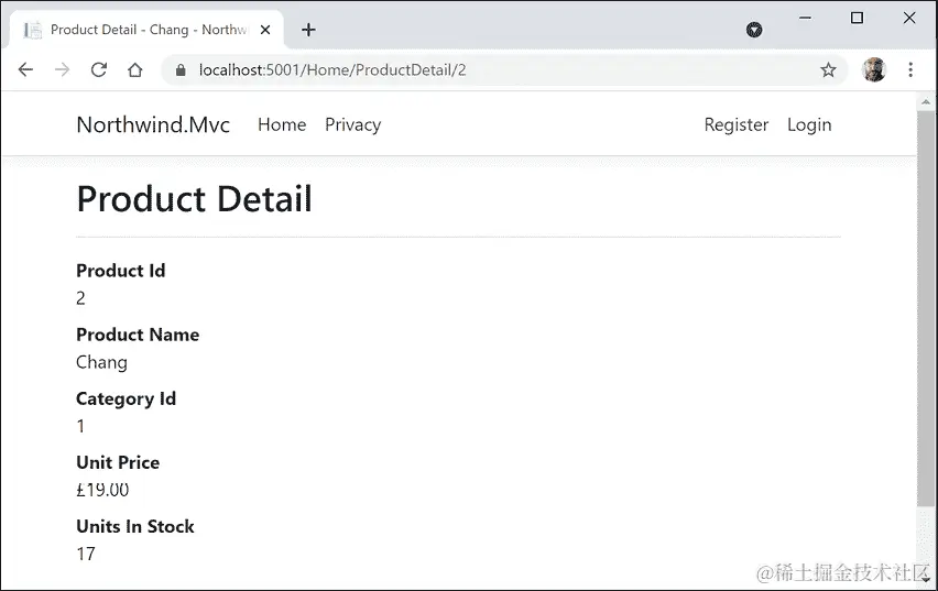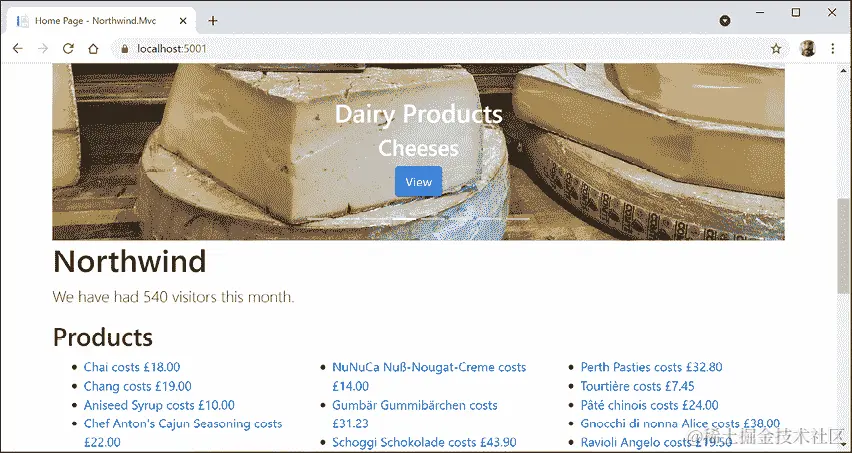 网站标题Northwind.Mvc,显示在页眉和页脚中。
