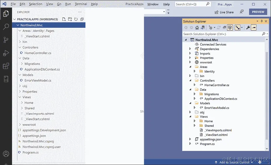 Northwind.Mvc作为活动 OmniSharp 项目。 -