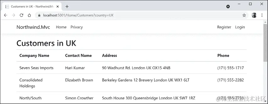 扩展Northwind.Mvc网站项目,使其拥有页面,访客可以在其中填写表单以创建新客户,或搜索客户并删除他们。MVC 控制器应调用 Northwind Web 服务来创建和删除客户。