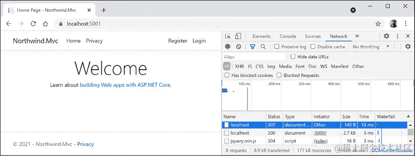 让我们回顾一下默认 ASP.NET Core MVC 网站项目模板的行为: