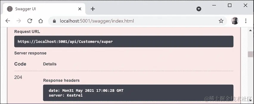 Northwind.WebApi项目/文件夹中,创建一个名为SecurityHeadersMiddleware.cs的文件,并修改其语句,如下所示:using Microsoft.Extensions.Primitives; // StringValues public class SecurityHeaders { private readonly RequestDelegate next; public SecurityHeaders(RequestDelegate next) { this.next = next; } public Task Invoke(HttpContext context) { // add any HTTP response headers you want here context.Response.Headers.Add( "super-secure", new StringValues("enable")); return next(context); } } -