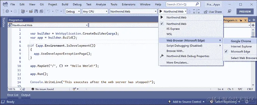 AddNorthwindContext | 我们创建的一个自定义扩展方法,以便更容易地根据项目引用注册 NorthwindContext 类,无论是 SQLite 还是 SQL Server。 |