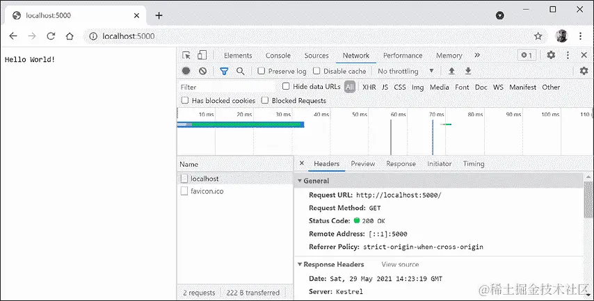 https://localhost:5001/bonjour,注意到控制台没有输出,因为没有匹配到端点路由。相反,我们的委托匹配到了/bonjour,直接写入响应流,并返回,没有进一步处理。 -