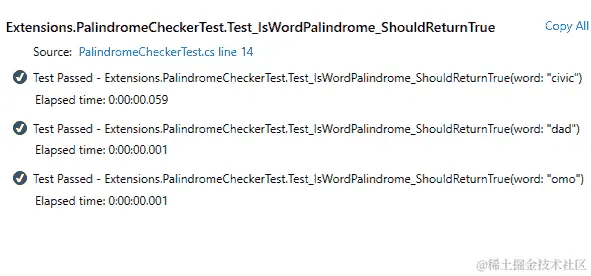 虽然测试没有严格的命名约定,但您应确保测试的名称代表特定的业务需求。测试名称应包含预期的输入以及预期的输出,Test_CheckPasswordLength_ShouldReturnTrue,这是因为除了用于测试特定应用功能之外,单元测试还是源代码的丰富文档来源。