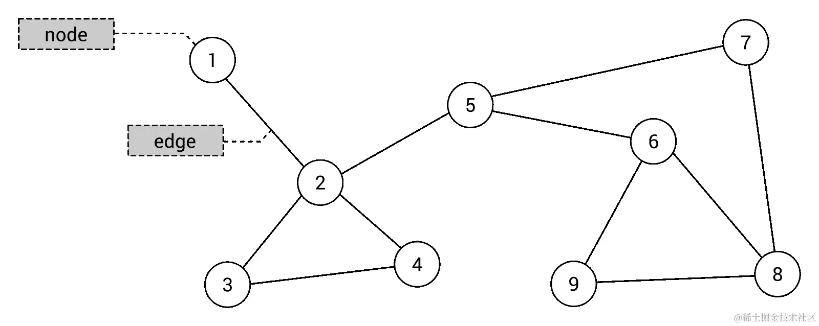 让我们从问题“什么是图?”开始。广义上说,图是由节点(也称为顶点)和边组成的数据结构。每条边连接两个节点。图数据结构不需要关于节点之间连接的任何特定规则,如下图所示: