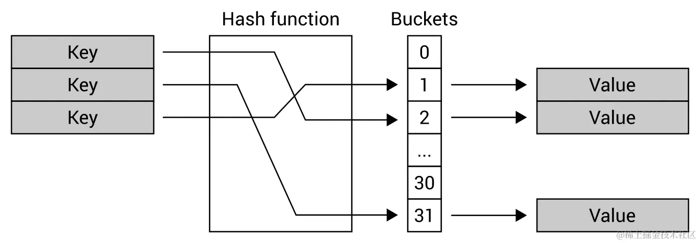 哈希表的机制如下图所示: