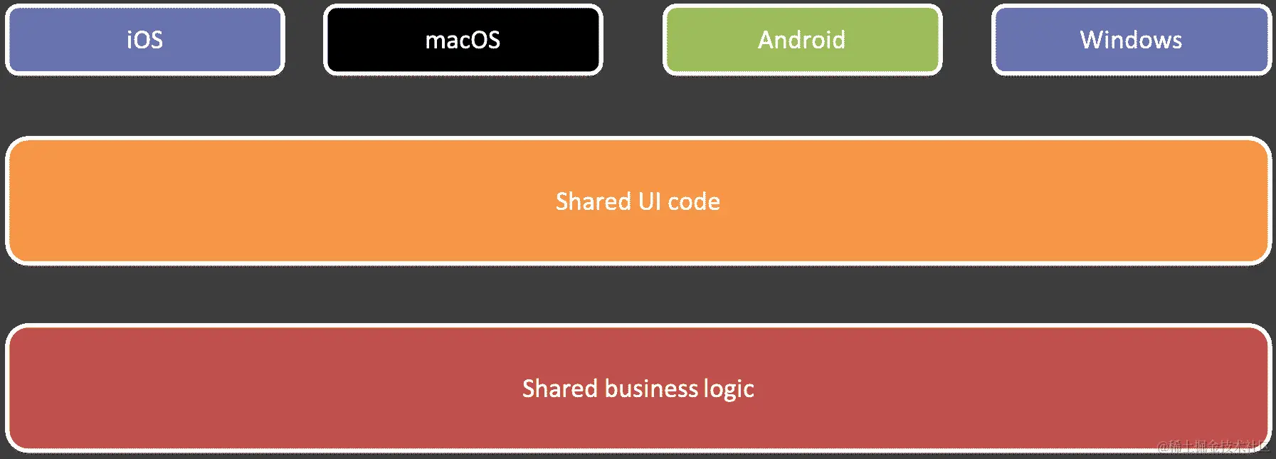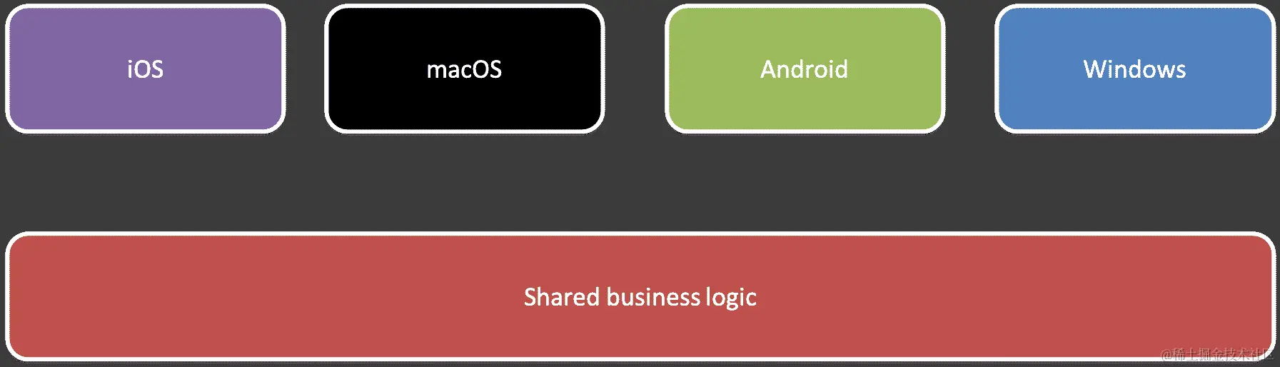 跨平台的代码共享将导致更短的开发时间。这也将导致更高质量的应用程序,因为我们只需要编写一次业务逻辑的代码。出现错误的风险会降低,我们还能够保证计算将返回相同的结果,无论用户使用什么平台。