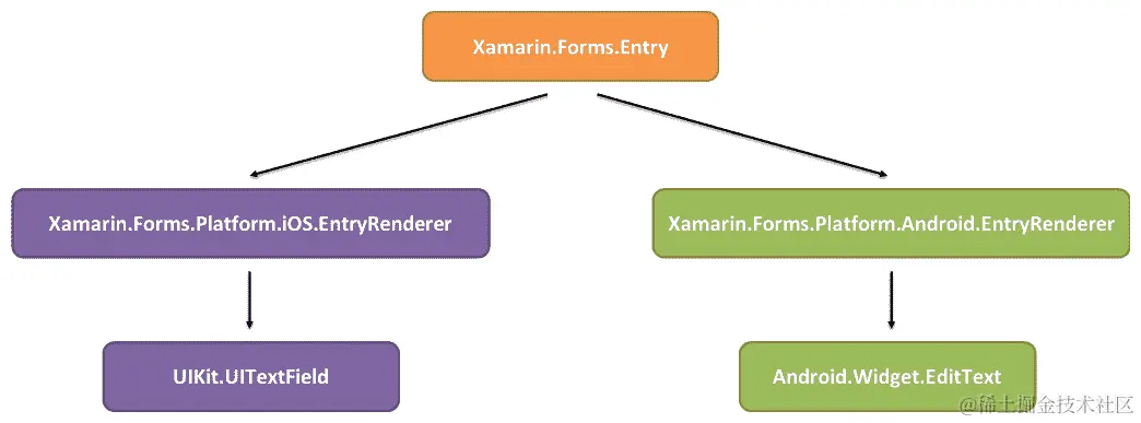 Xamarin.Forms基本上只是每个平台上的一个抽象层。Xamarin.Forms有一个共享层,被所有平台使用,以及一个特定于平台的层。特定于平台的层包含渲染器。渲染器是一个将Xamarin.Forms控件映射到特定于平台的本机控件的类。每个Xamarin.Forms控件都有一个特定于平台的渲染器。