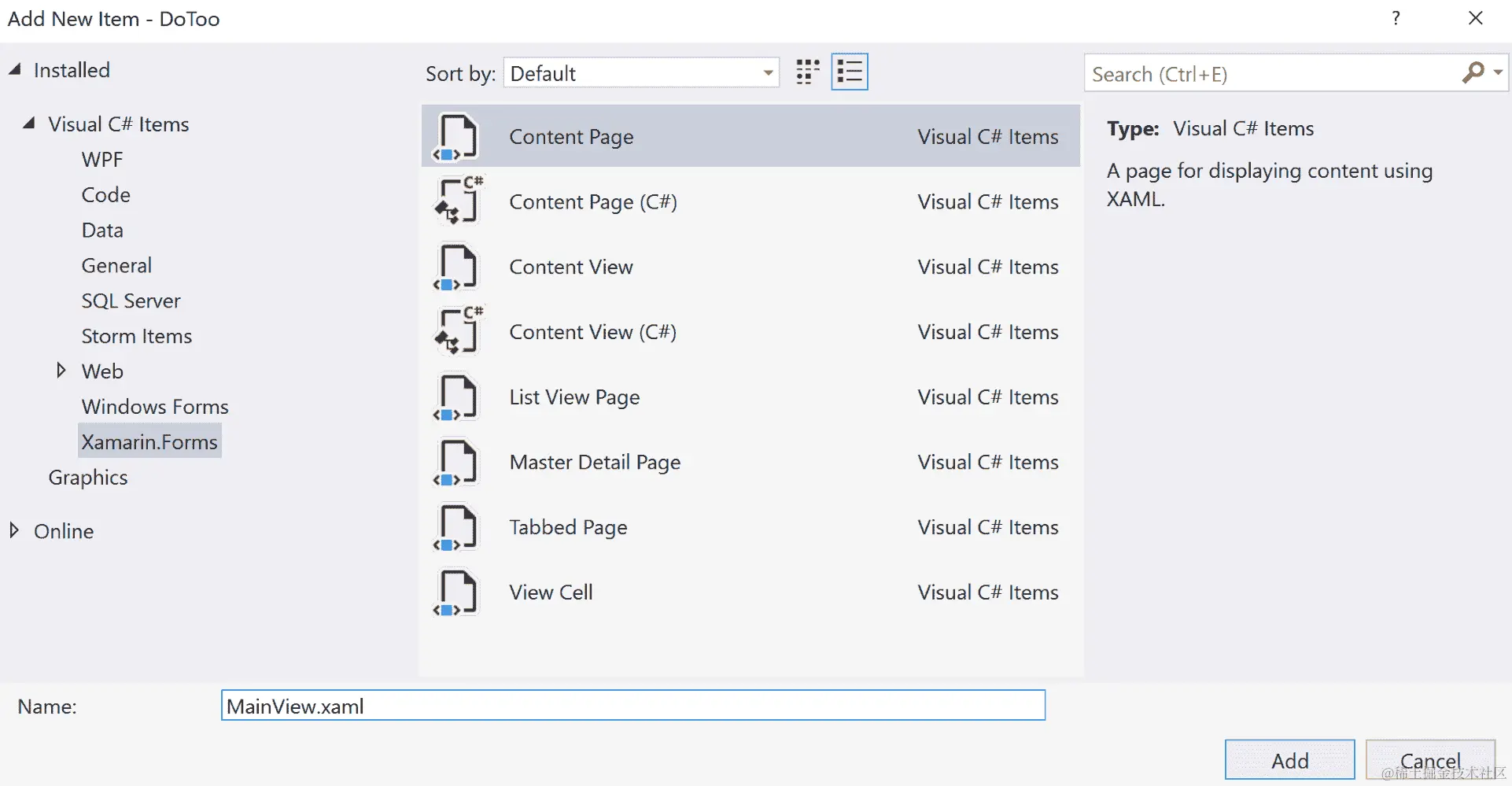 在 Xamarin.Forms 中声明用户界面的最常见方式是在 XAML 文档中定义它。也可以通过 C#创建 GUI,因为 XAML 实际上只是用于实例化对象的标记语言。理论上,您可以使用 XAML 来创建任何类型的对象,只要它具有无参数的构造函数。XAML 文档是具有特定模式的可扩展标记语言(XML)文档。