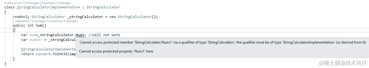protected internal。 -