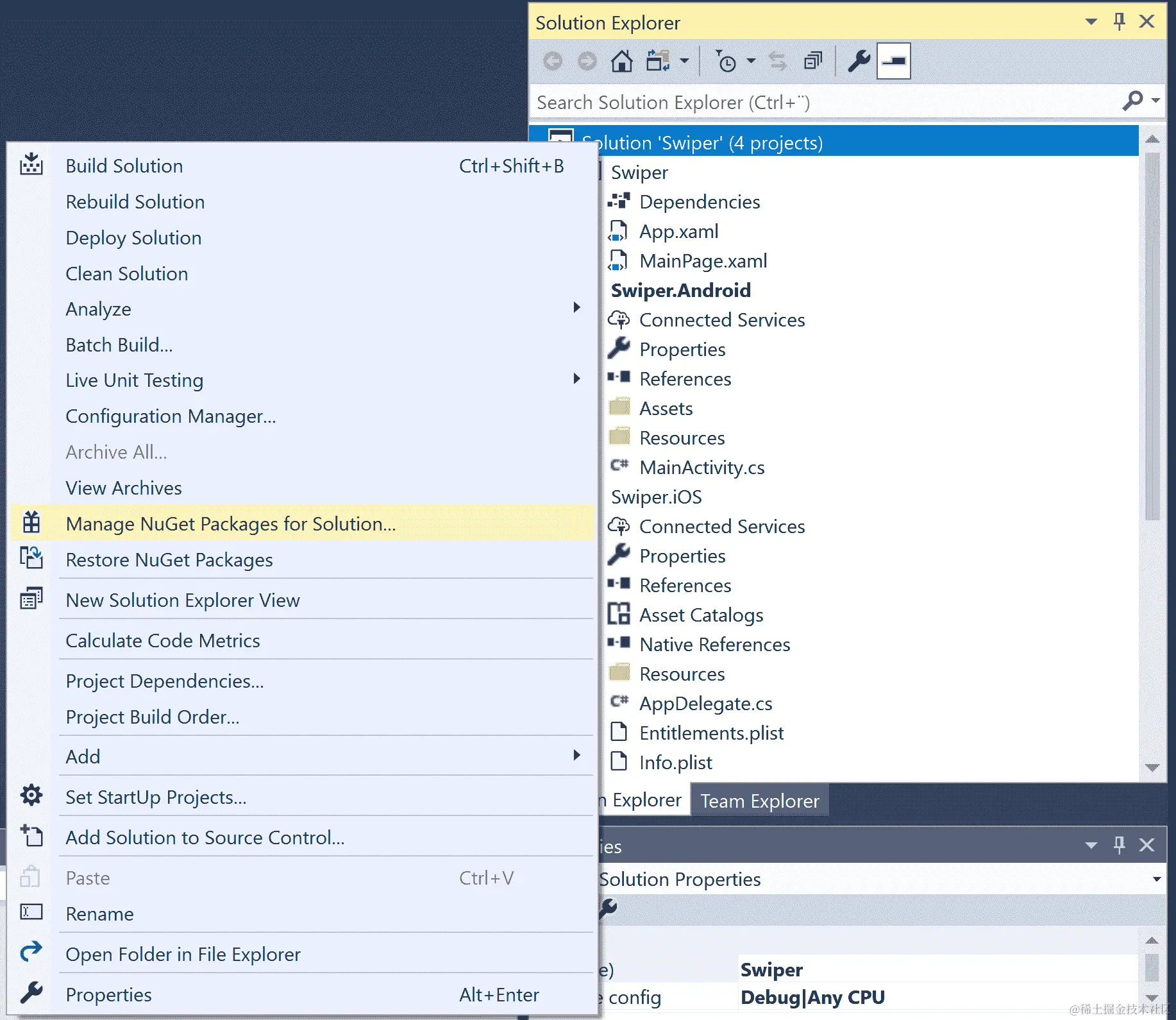 点击“管理解决方案的 NuGet 包...”: