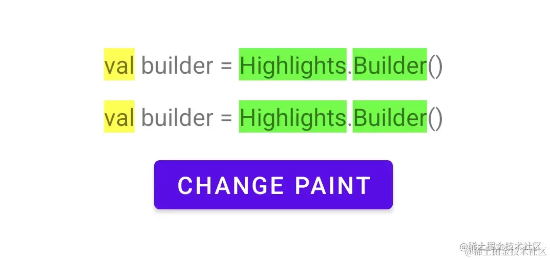 可以看到不同的 Builder 参数设置方式可以对 val 设置黄色高亮,Highlights 和 Builder 设置绿色高亮。