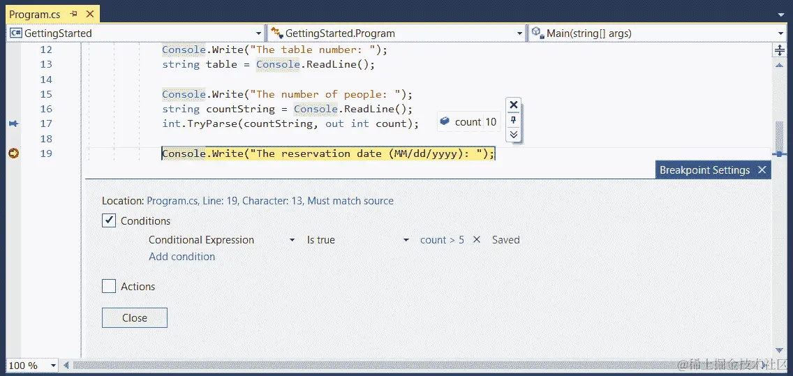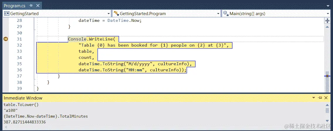 让我们继续Program类中Main方法的代码的第一部分: