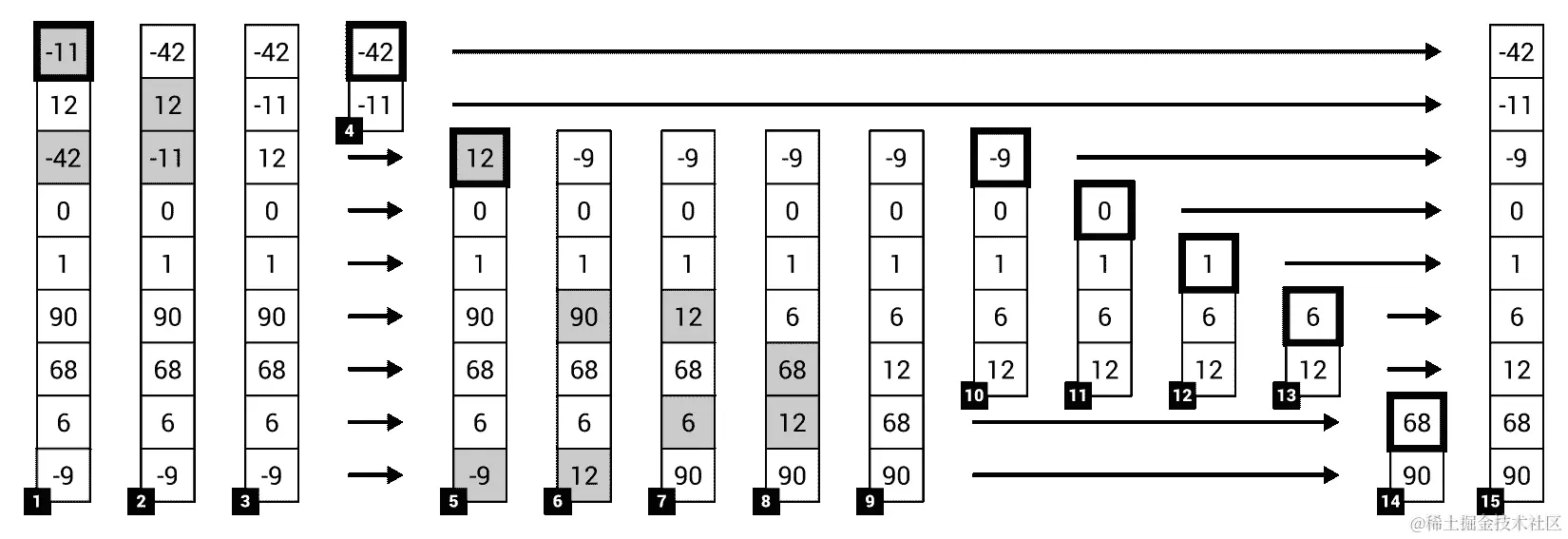 代码中最重要的部分之一是MoveNext方法。当_current变量设置为null时,即列表中没有项目时,它停止迭代。否则,它将当前元素更改为下一个元素,或者更改为列表中的第一个节点,如果下一个节点不可用。在Reset方法中,只需将_current字段的值设置为列表中的第一个节点。
