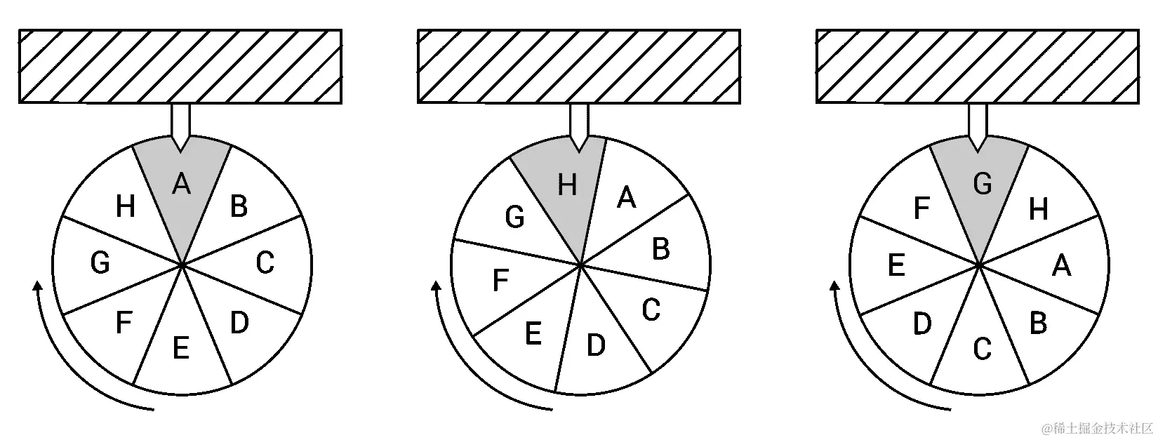 这个示例模拟了一个游戏,用户以随机速度旋转轮子。轮子的旋转速度越来越慢,直到停止。然后用户可以再次旋转它,从上一次停止的位置开始,如下图所示: