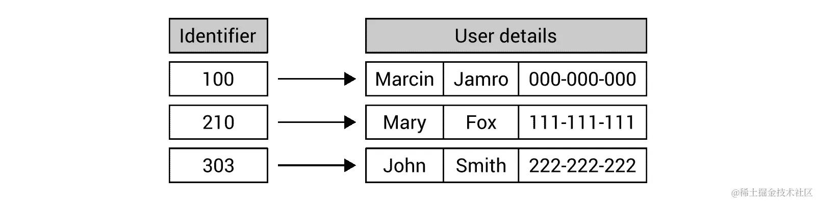 这意味着什么?为了解释这个名字,让我们暂时回到数组的话题,数组属于随机访问数据结构的一部分。它们之间的区别只有一个词,即有限或随机。正如您已经知道的那样,数组允许您存储数据并使用索引访问各种元素。因此,您可以轻松地从数组中获取第一个、中间、n^(th)或最后一个元素。因此,它可以被称为随机访问数据结构。