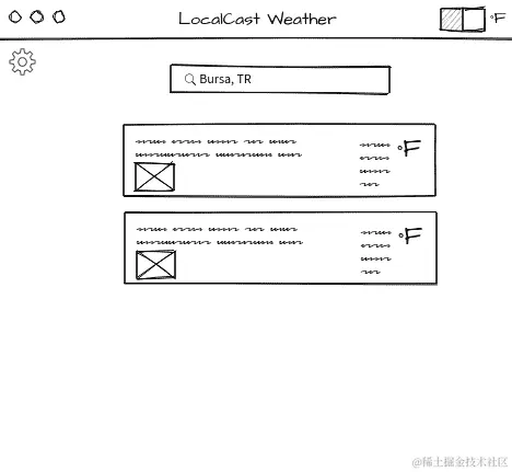 LocalCast 天气搜索线框图