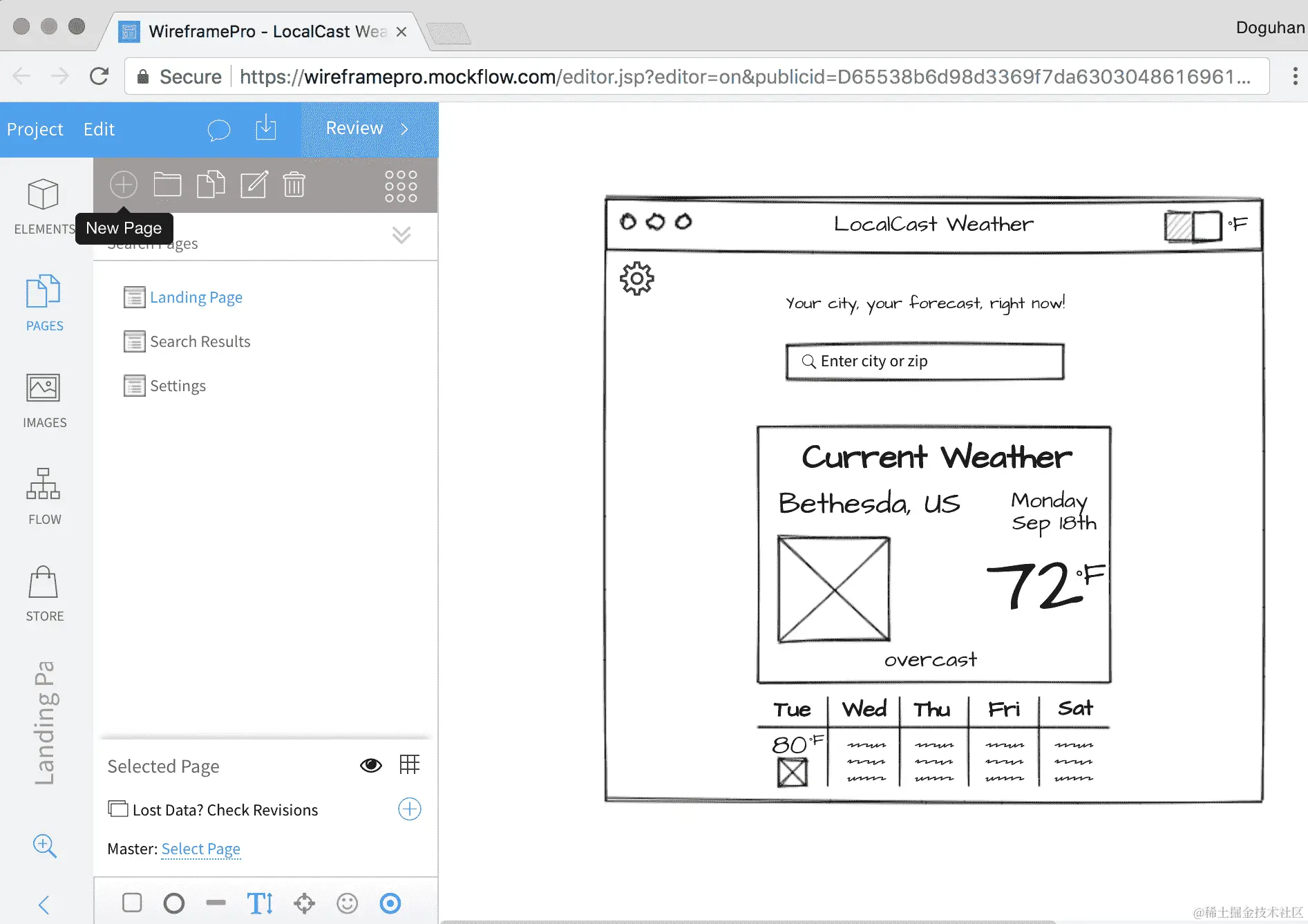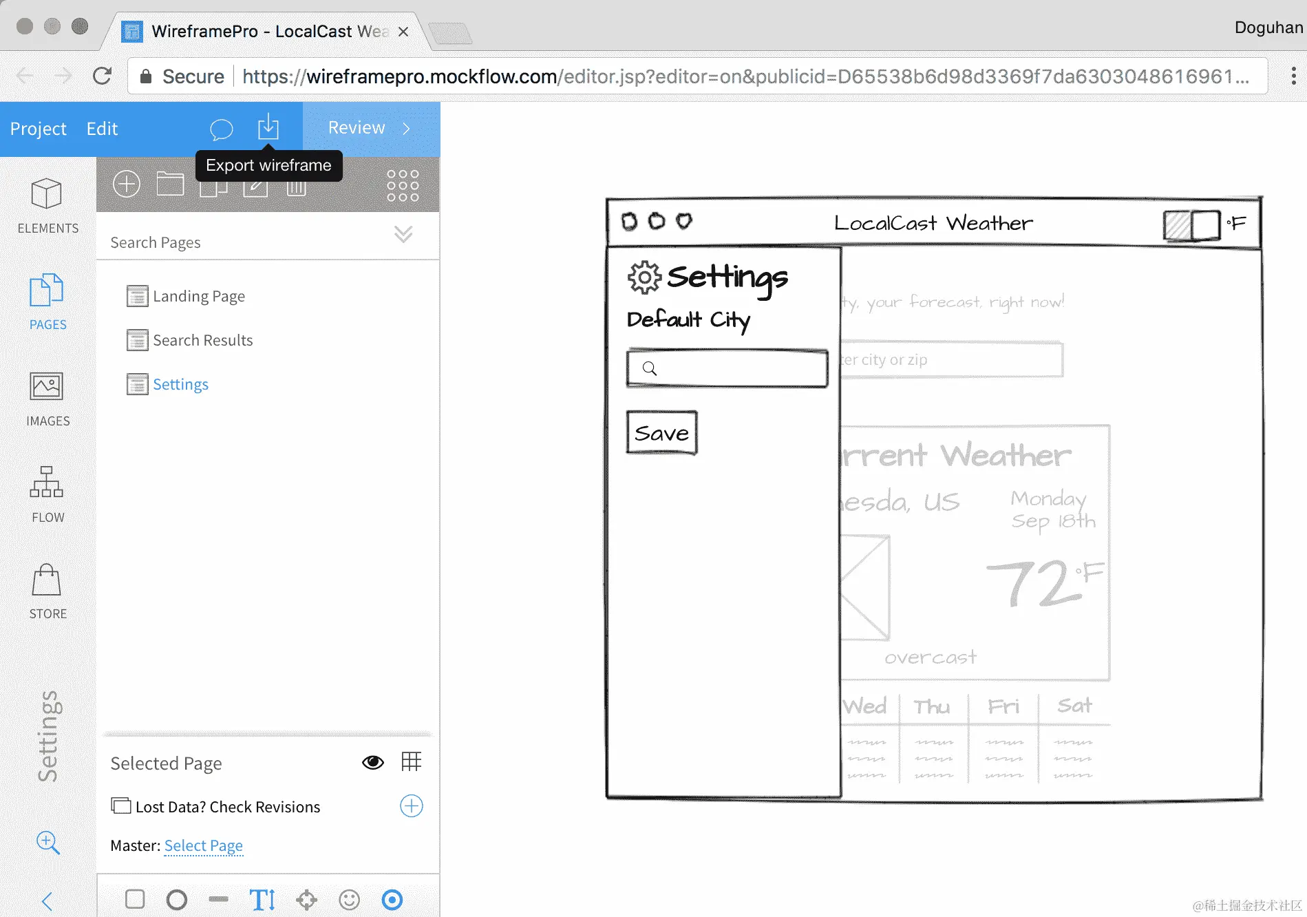 LocalCast Weather Wireframe