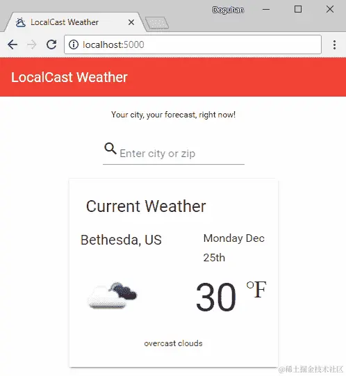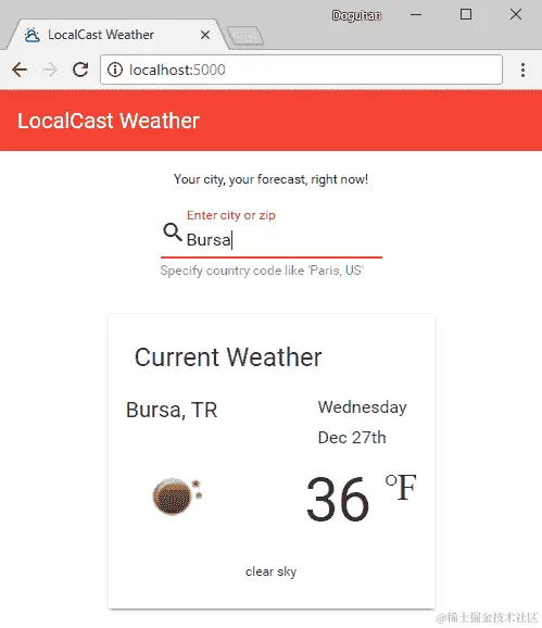 OpenWeatherMap 的免费端点确实带来了一个有趣的挑战,其中两位数的国家代码可能会伴随城市名称或邮政编码以获得最准确的结果。这是一个很好的机会,可以为用户实现反馈机制,如果对于给定的查询返回了多个结果。