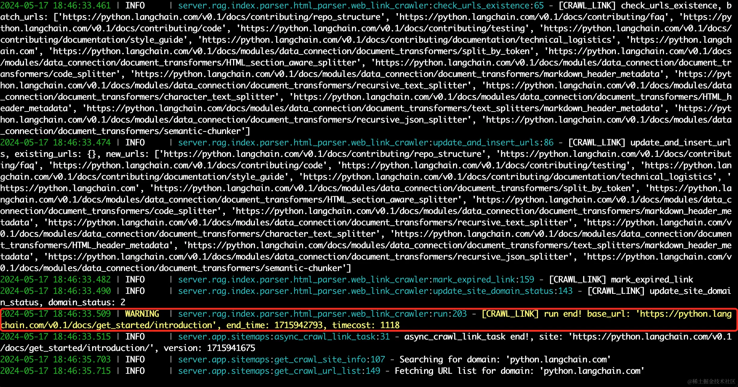 在后台可以看到爬取网页URL的日志。