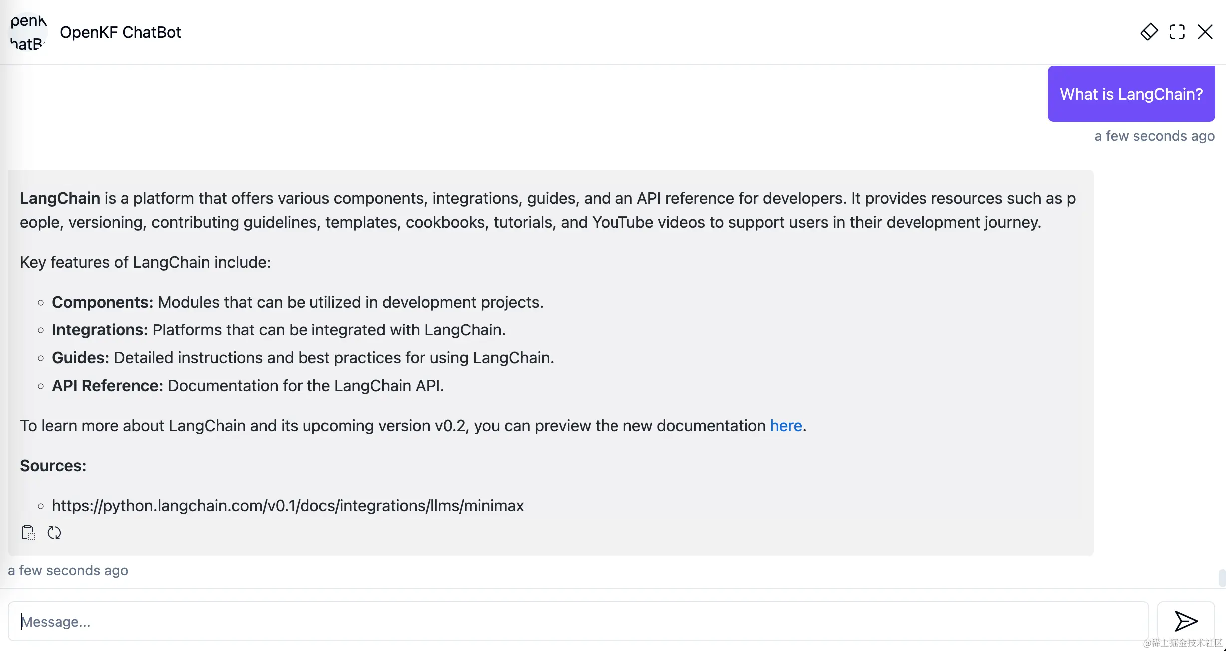 浏览器打开http://127.0.0.1:7000/open-kf-chatbot/,就可以访问Bot了。