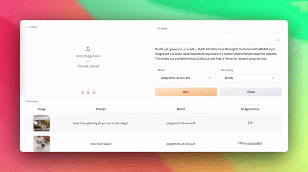 作为此次发布的一部分,我们提供了一个 Space 应用,直接用 big_vision 仓库 中的参考实现,并提供了一个简便的方式来使用混合模型。