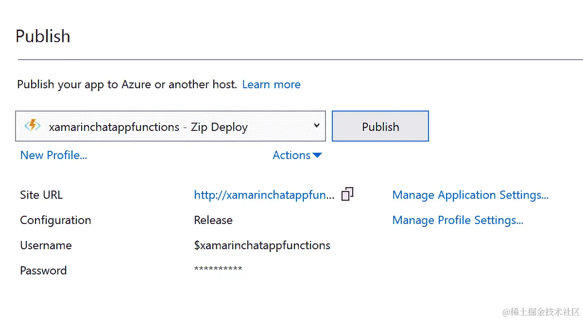 以下截图显示了最后一步。之后,发布配置文件被创建: