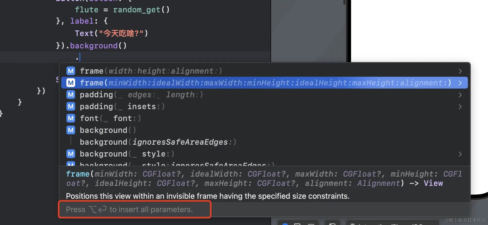 这句话的意思就是按下option + enter就可以插入所有的参数,其实按下tab是插入这个组件,但是不带参数,他们的区别就是是: