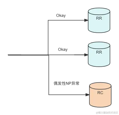 思路 2: 稍加思索一下,好像这个是事务隔离级别的原因。在这个 Case 里面,看上去数据库采用的 RC 隔离级别,也就是读已提交。如下图所示: