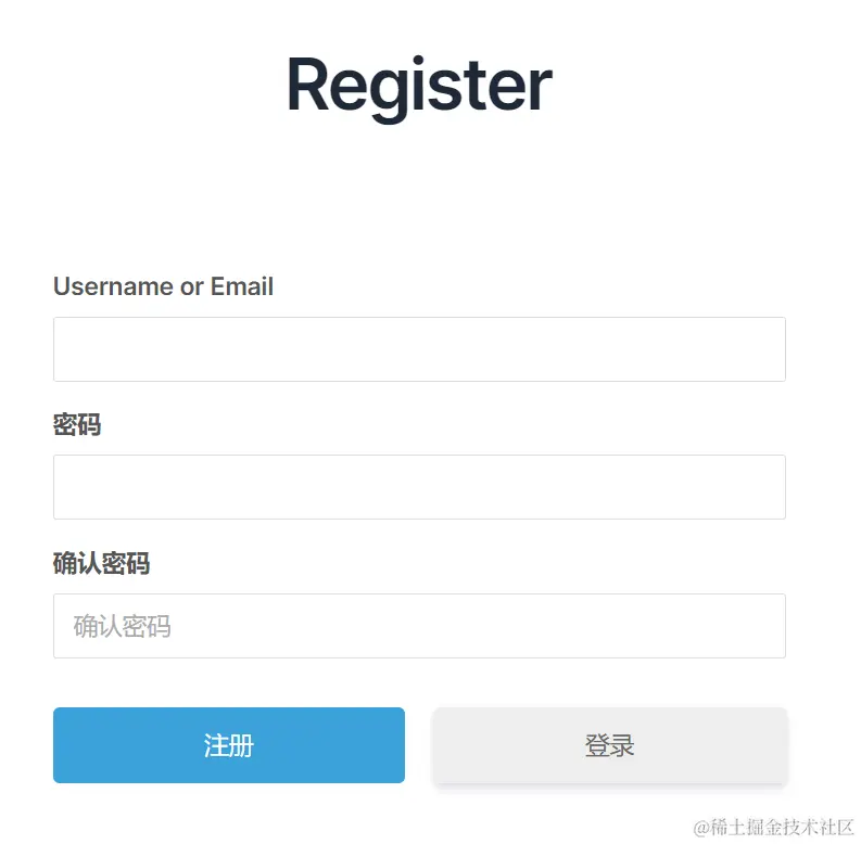 然后用户打开 /register, 则可以看到界面: