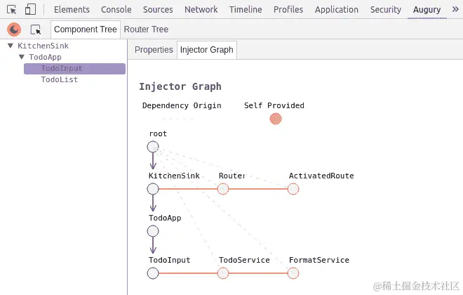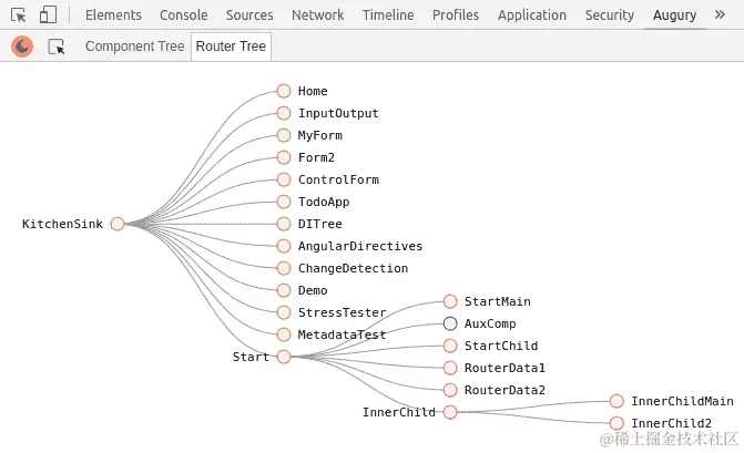 Augury 是用于调试 Angular 应用程序的 Chrome 扩展,就像 Batarang 用于调试 Angular 1 应用程序一样。安装后,该扩展被视为具有测试 Angular 应用程序行为功能的开发工具插件。