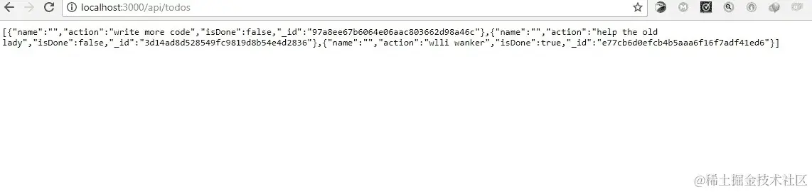打开浏览器并访问 localhost:3000/api/: