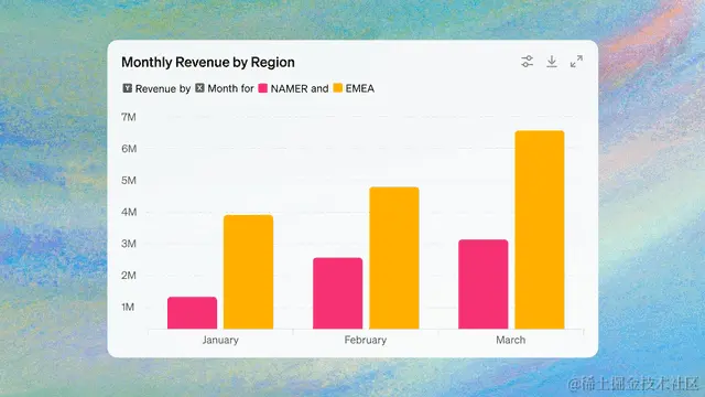 可以在对话中自定义条形图、折线图、饼图和散点图并与之交互。将鼠标悬停在图表元素上,提出其他问题或选择颜色。准备就绪后,下载以在演示文稿或文档中使用。