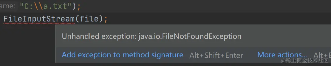 设计意图:受检异常通常用于表示程序运行过程中可能出现的外部错误或异常情况,这些情况往往是程序自身无法控制的,比如文件不存在、网络连接失败等。它们提示开发者需要预先考虑并处理这些潜在的问题。