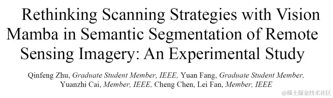 论文标题:Rethinking Scanning Strategies with Vision Mamba in Semantic Segmentation of Remote Sensing Imagery: An Experimental Study