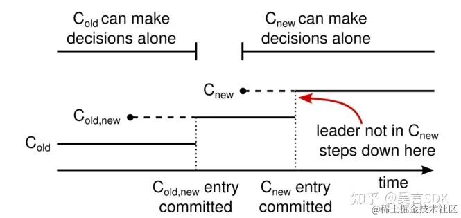 C-old,new 已提交后,C-old 已不会产生影响,Leader 再创建和提交 C-new 就是安全的了。