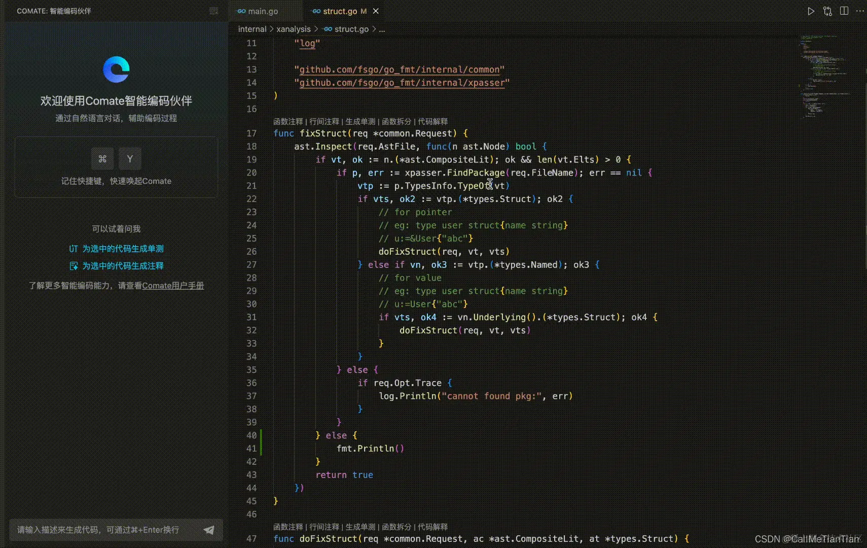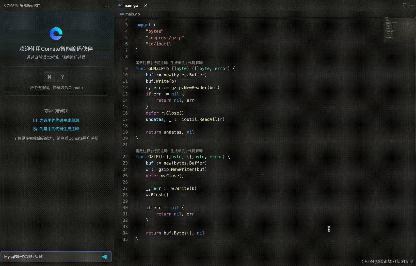 智能注释生成:良好的注释是代码的灵魂。Comate为你的代码自动生成清晰的注释,确保团队成员之间的无缝沟通。