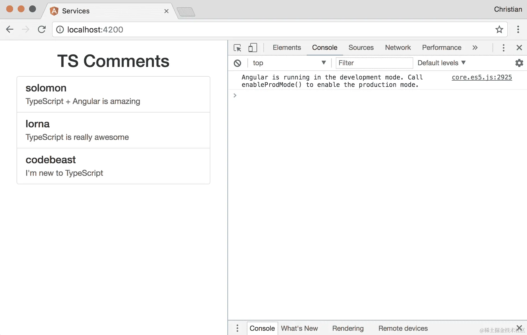 装饰器不再设置在值属性上,而是设置在 setter 属性上。该属性接收来自评论列表(父组件)的评论。然后,它用作者姓名的大写版本覆盖作者属性。getter 只是返回评论,所以您可以从视图中访问它。