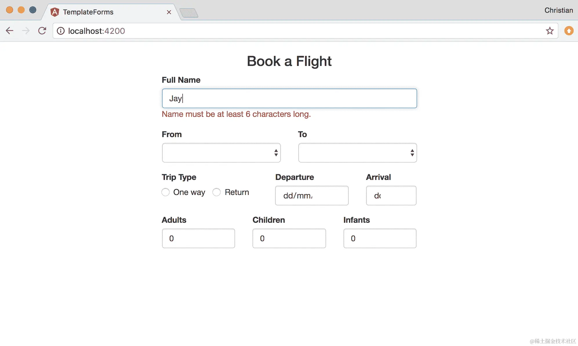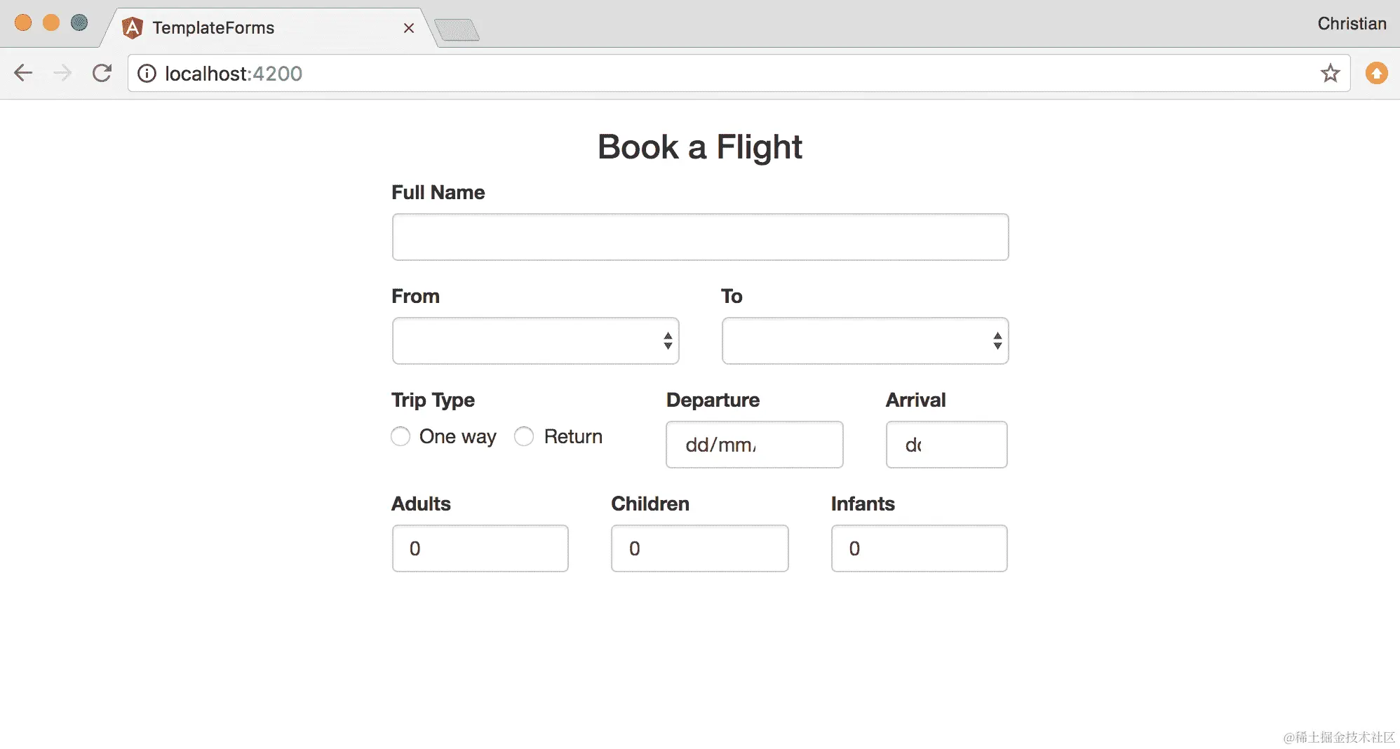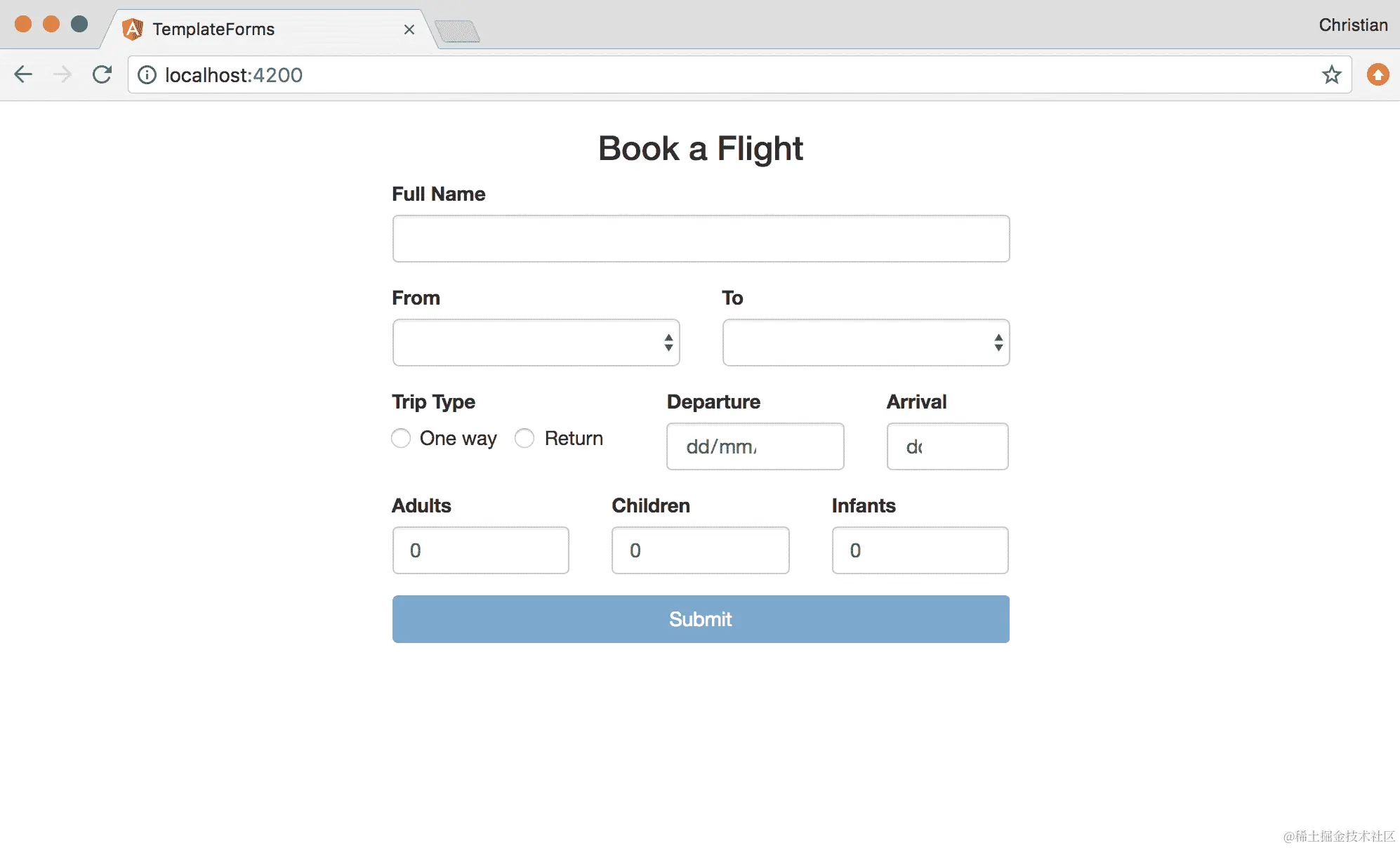 立即开始并使用 Angular CLI 创建一个新的 Angular 项目。完成后,使用以下内容更新AppComponent: