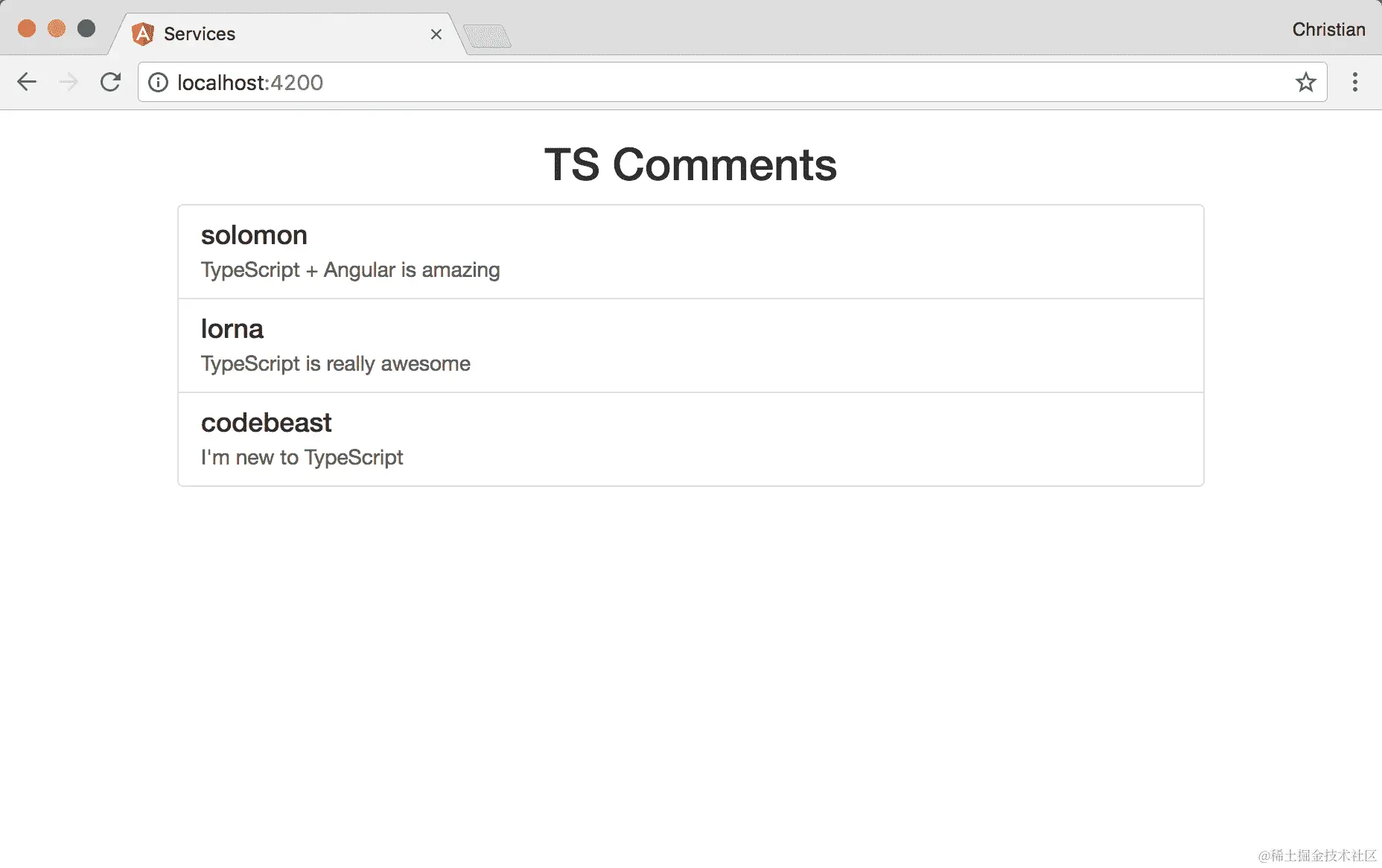 *ngFor指令用于遍历评论,获取每条评论,并在我们的视图上显示评论。