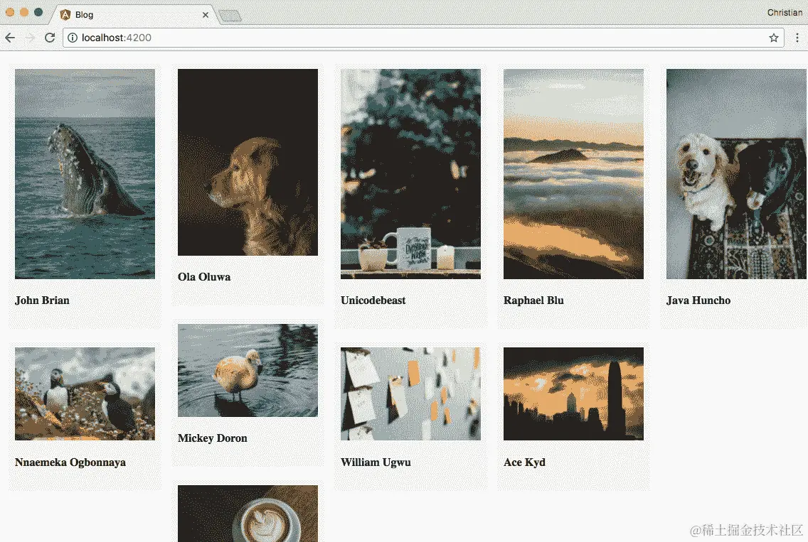 getPosts方法,该方法在转换每个帖子项后返回所有帖子。我们还使用图像 ID 生成图像 URL。这是通过将 ID 附加到 Cloudinary (cloudinary.com/)图像服务器 URL 来完成的。在使用它们之前,这些图像已上传到 Cloudinary。 -