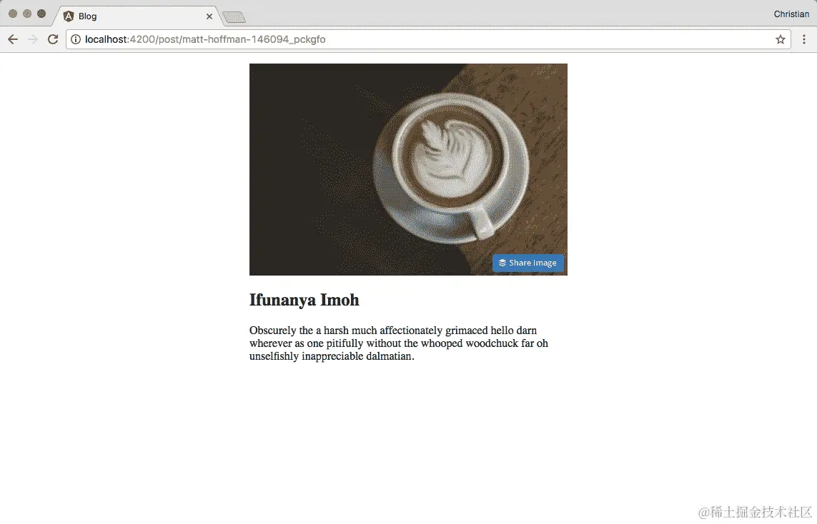 帖子组件只显示带有所有细节的单个帖子。为了显示这个单个帖子,它从 URL 接收参数并将参数传递给博客服务类中的 byId 方法: