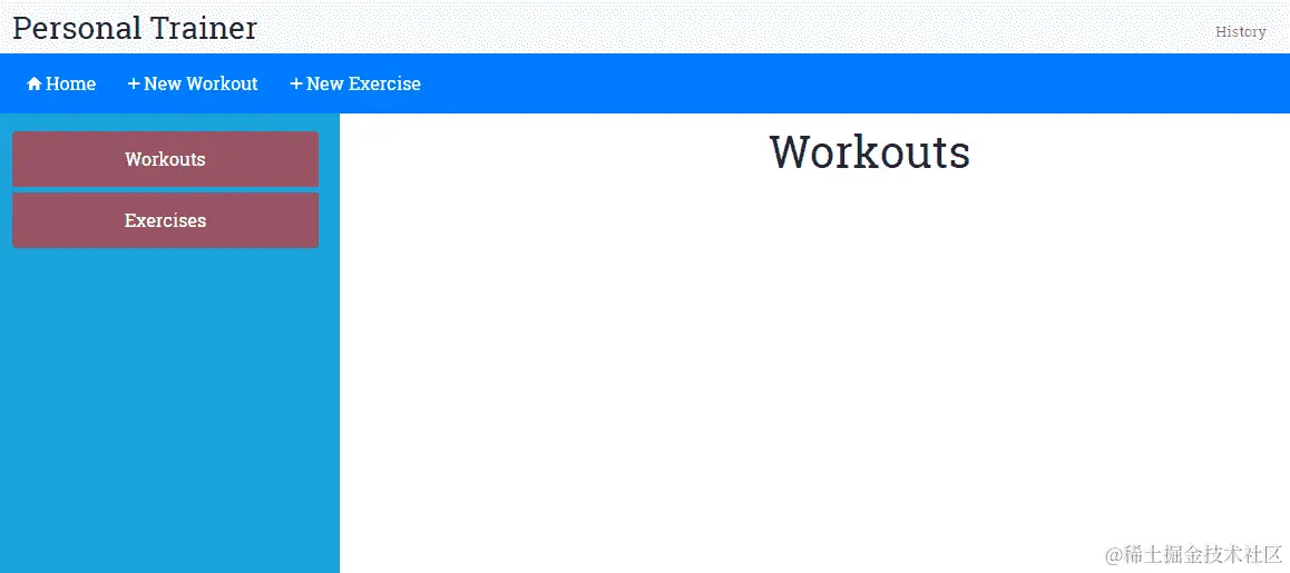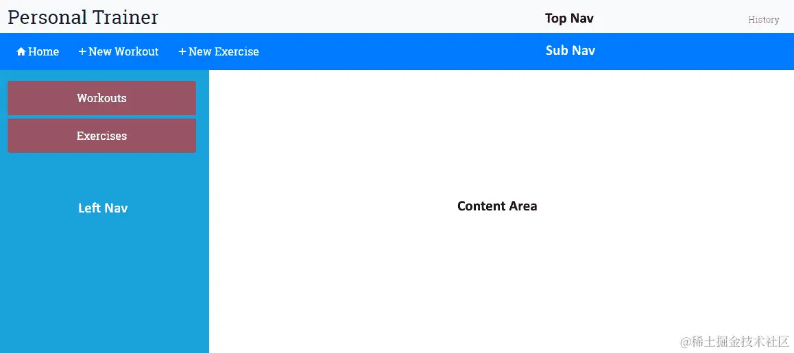 内容区域:这是我们组件的主视图显示的地方。这里发生了大部分的操作。我们将在这里创建/编辑练习和健身计划,并在这里显示练习和健身计划列表。
