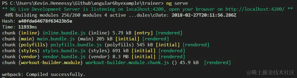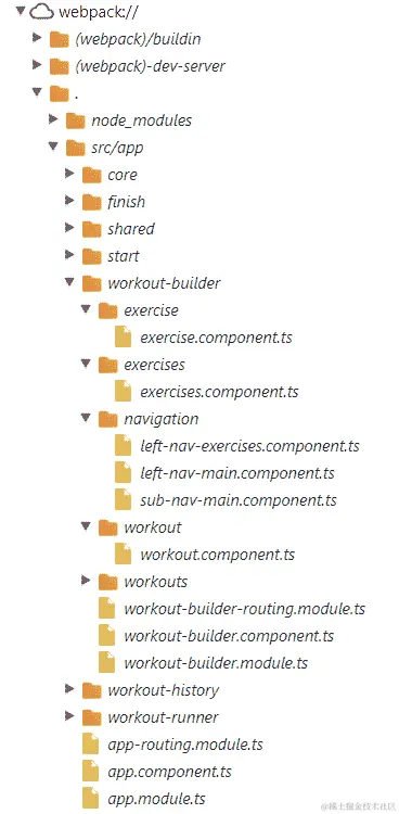 我们已将此组件(以及我们为此功能生成的其他文件)包装在名为workout-builder.module.ts的新模块中: