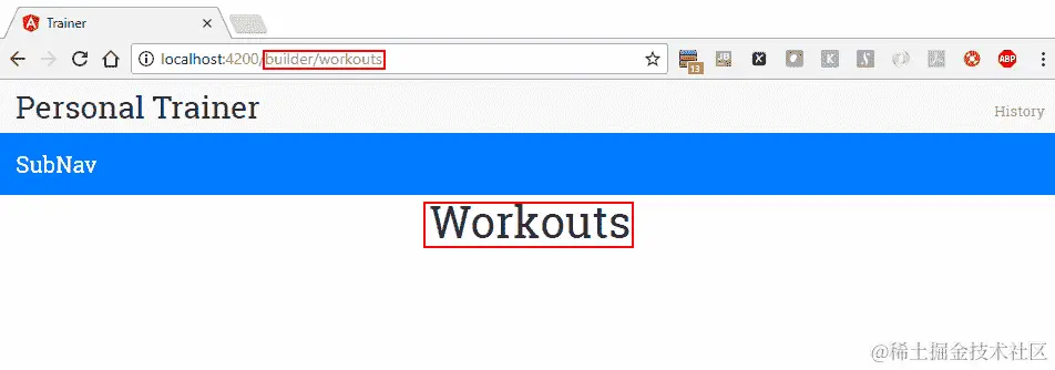 我们已经为锻炼构建器页面修复了路由故障,但是还未修复锻炼构建器页面。再次,我们将留给你自己去修复它。