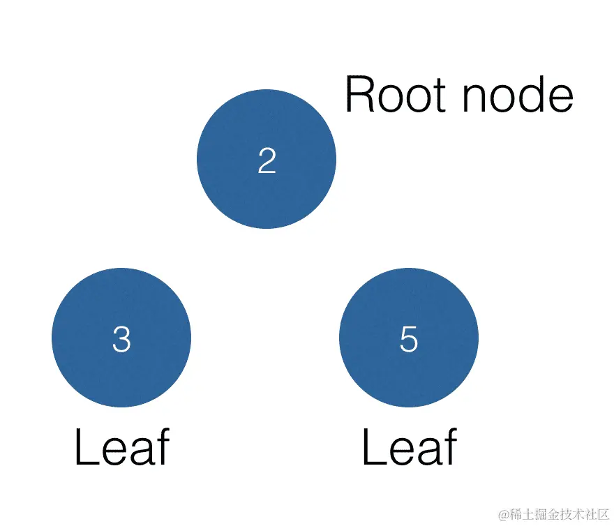 到目前为止,我们还没有完全说明递归的概念。我们可能有点理解,但可能还不确定为什么不能使用老式的while或for循环来代替。递归在解决看起来像重复模式的问题时才会显现。一个例子是树。树有一些类似的概念,例如由节点组成。一个没有子节点连接的节点称为叶子。具有子节点但与上游节点没有连接的节点称为根节点。让我们用图示说明这一点: